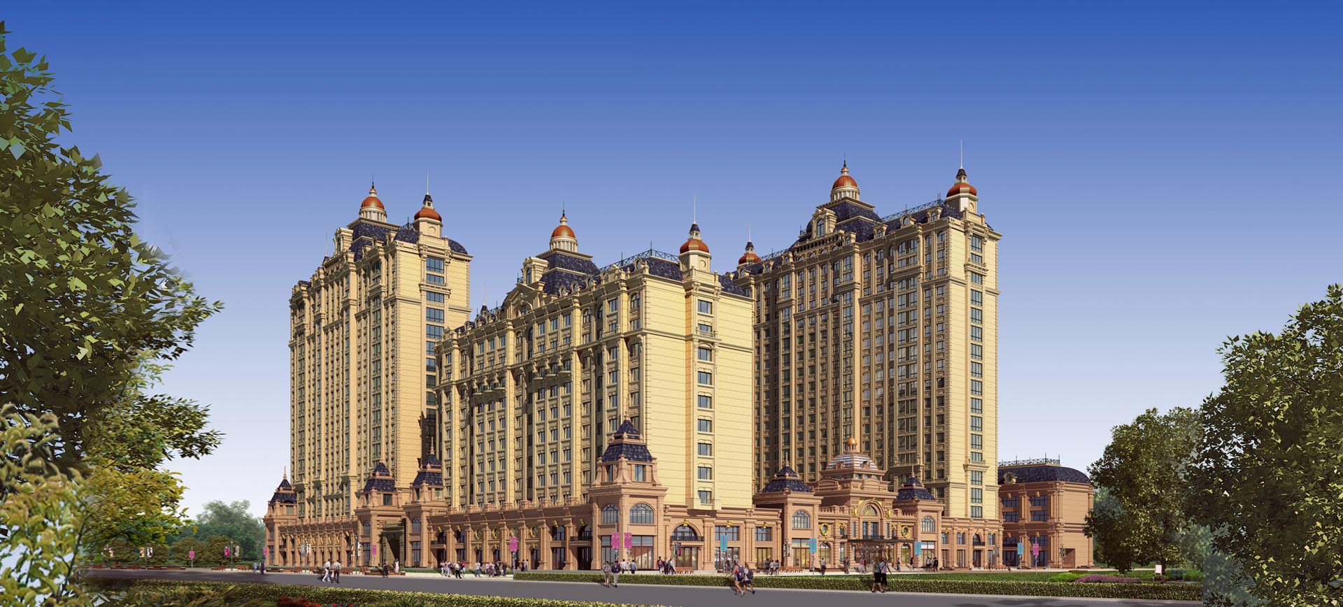 皇宮廳—金碧輝煌、皇宮式裝修,面積1038㎡,層高8.6米,配備愛情階梯、軌道威亞、二層觀禮臺、浪漫燈光秀、旋轉升降舞臺、頭頂天幕連接開合大屏。可承接50桌的大型宴會,也可舉辦600人的大型會議;還可用作會展、車展場地,每逢節假日還為市民上演文藝節目。